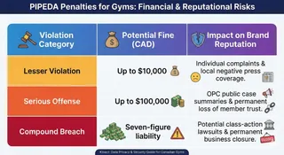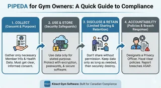 PIPEDA is the law that says you are responsible for member data. If you mess up, you could face $100,000 in fines. To stay safe, minimize the data you collect and use a Canadian gym software that encrypts everything. Always train your staff on password safety.
